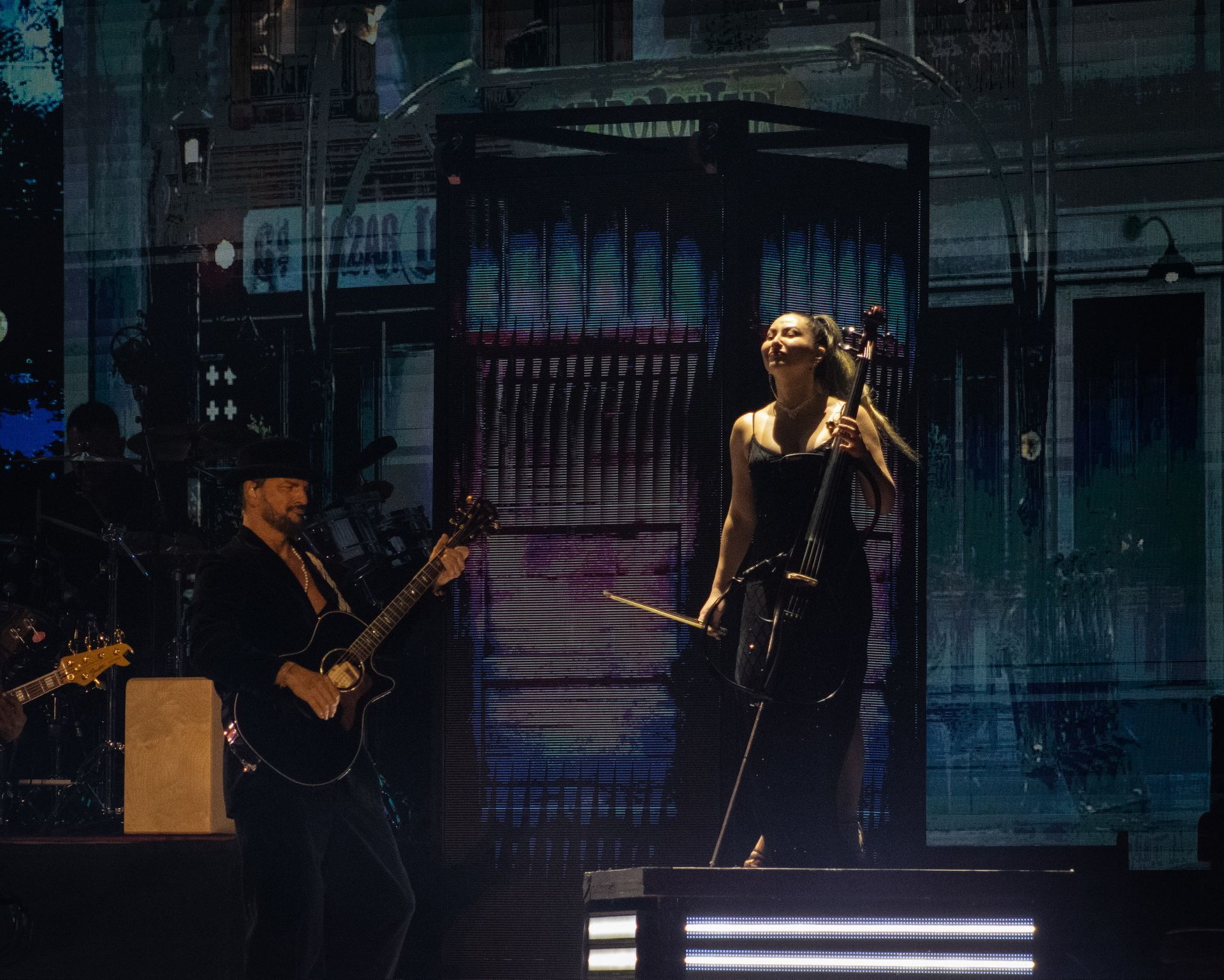 El show destacó no solo por su repertorio, sino también por su puesta en escena. Pantallas gigantes, efectos visuales y una narrativa escénica envolvente transformaron el concierto en una experiencia casi cinematográfica.